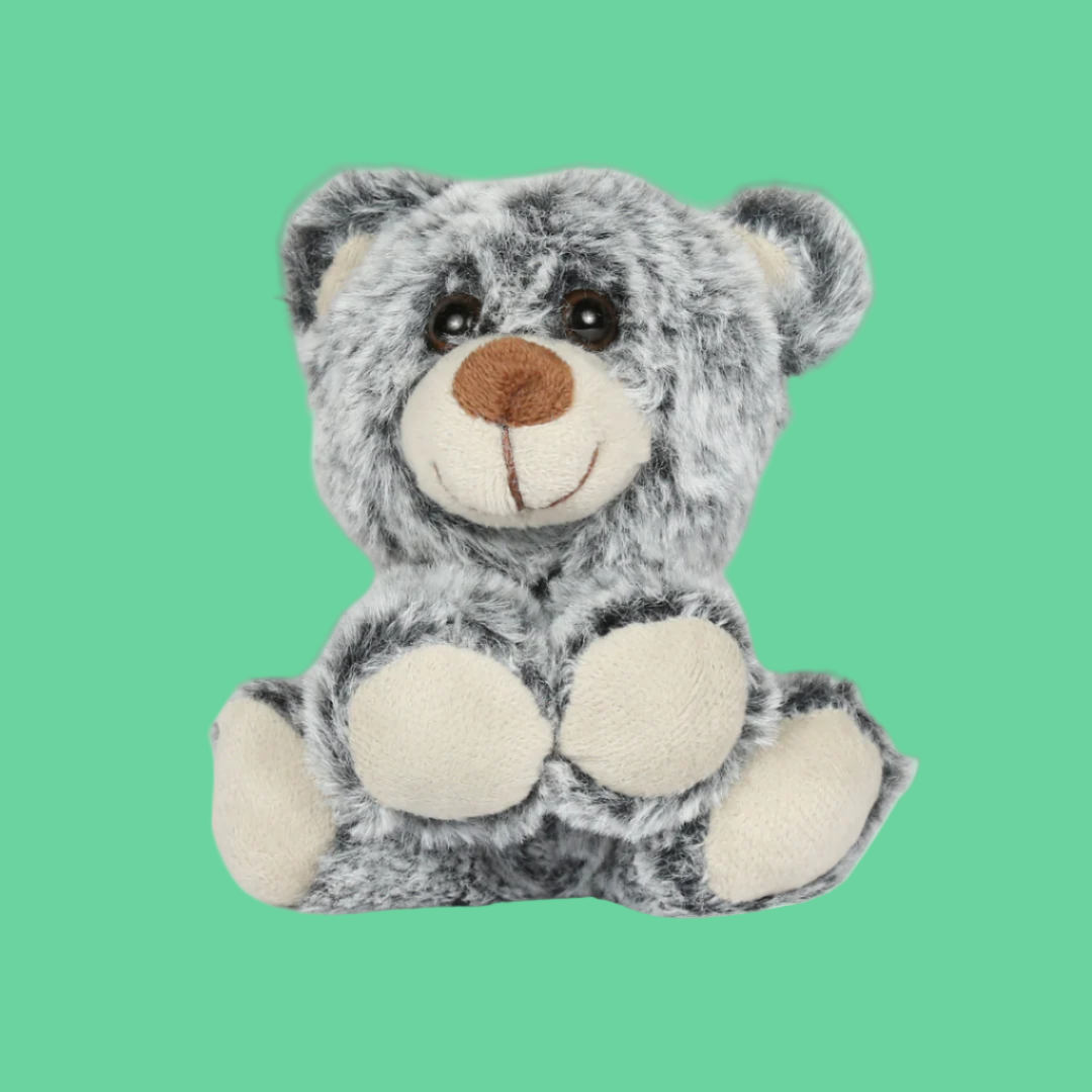 Adorable 11 cm small grey bear, perfect for gift packs and collectible sets. Part of a charming trio including a bear, elephant, and rabbit—ideal for gifts.